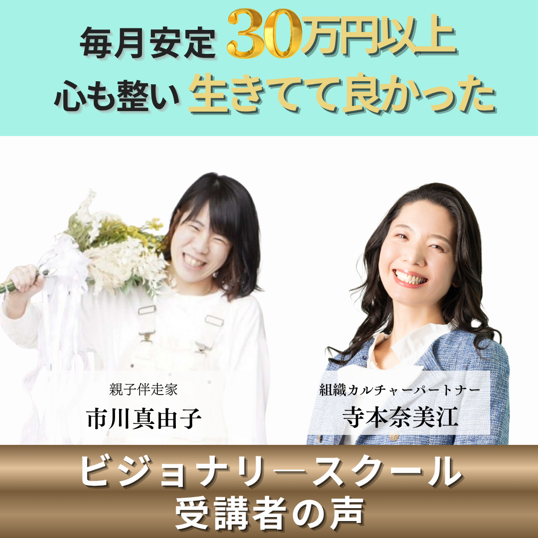 親子伴走家 市川真由子 ◆ビジョナリースクール受講の理由 人生初の挑戦に打ちのめされ、 すべてを諦めようとしていた頃。 人の事も、自分自身の事も信じる…